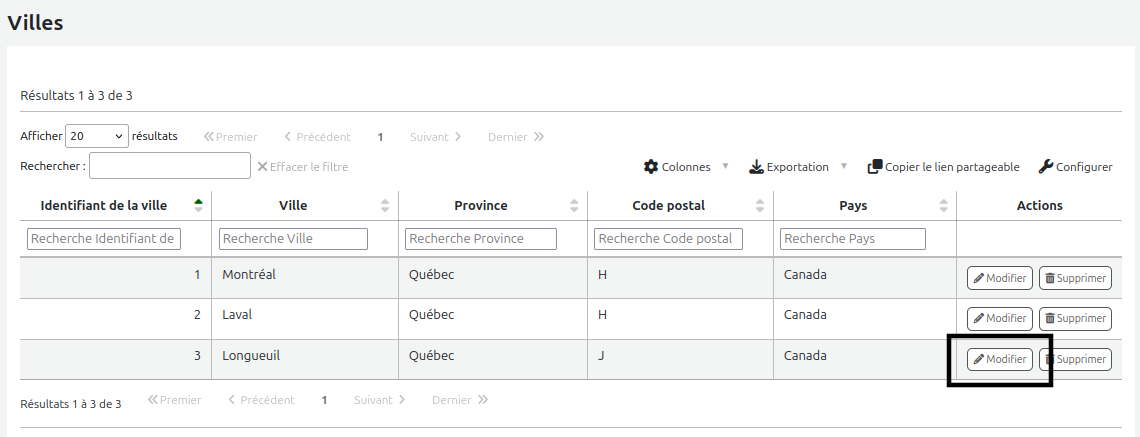 liste des villes modifier